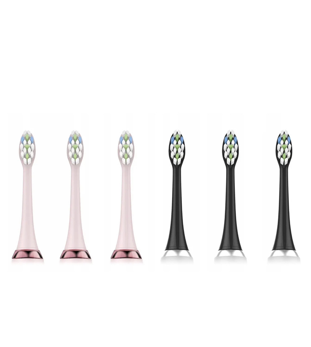 - 6 звукових насадок для зубних щіток (3 рожевих і 3 чорні)