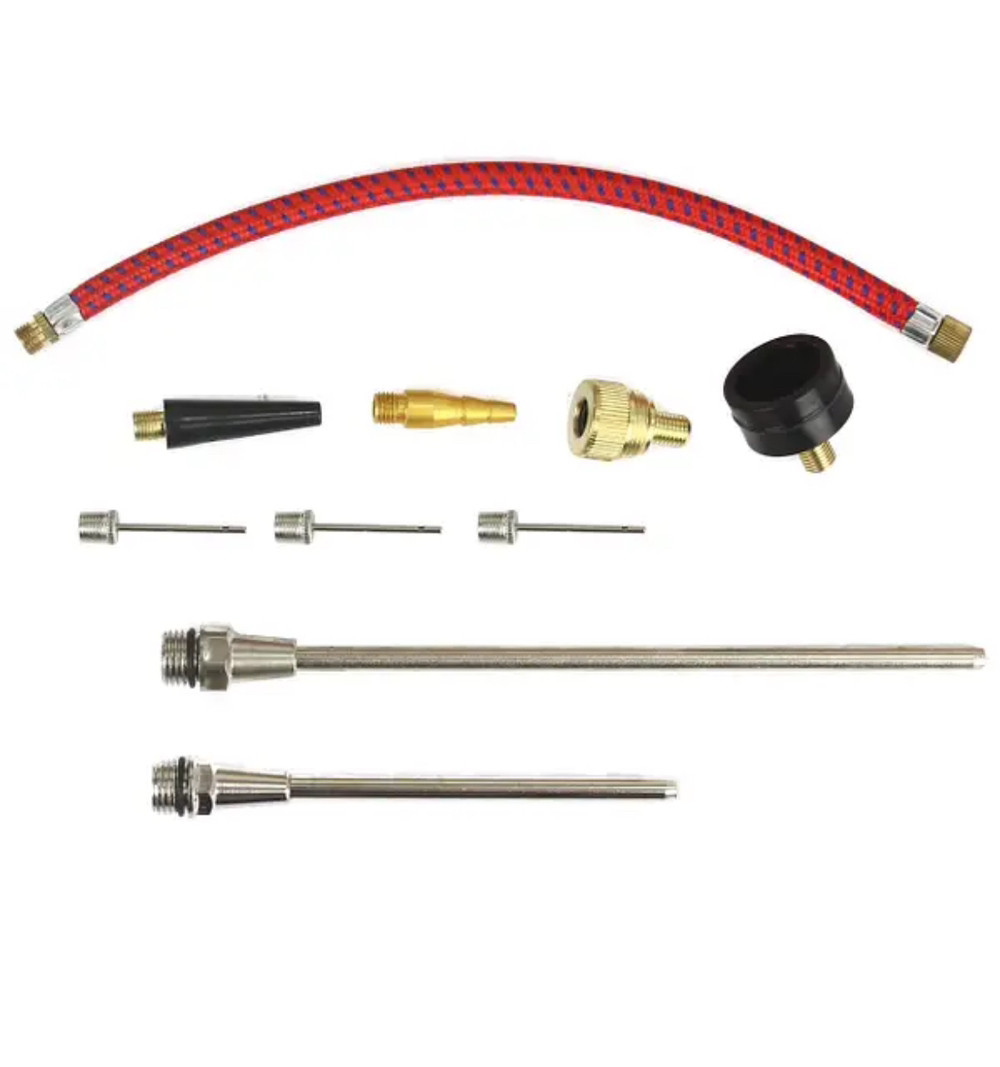 • Набір подовжувачів і аксесуарів для накачування велосипедів, м'ячів, матраців, мотоциклів і автомобілів