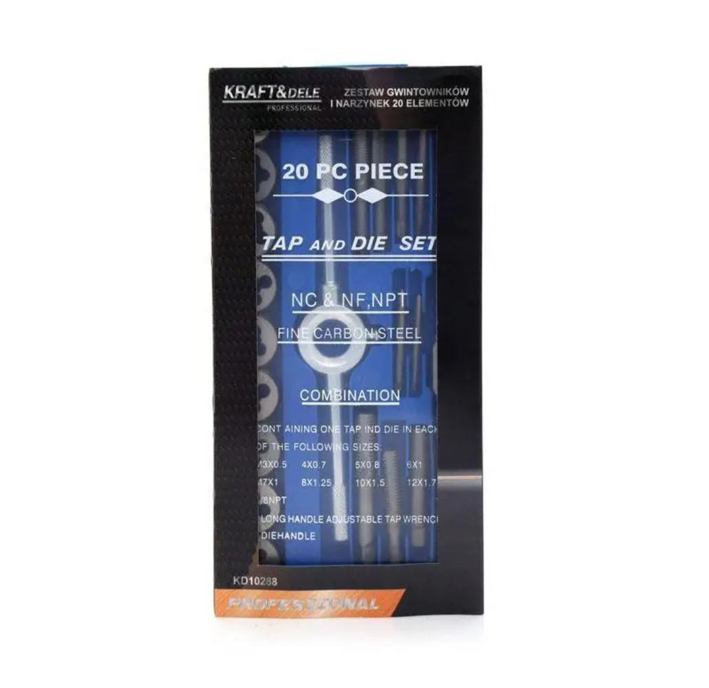 Набір мітчиків та плашок (М3-М12) 20 шт. Kraft&Dele KD10288