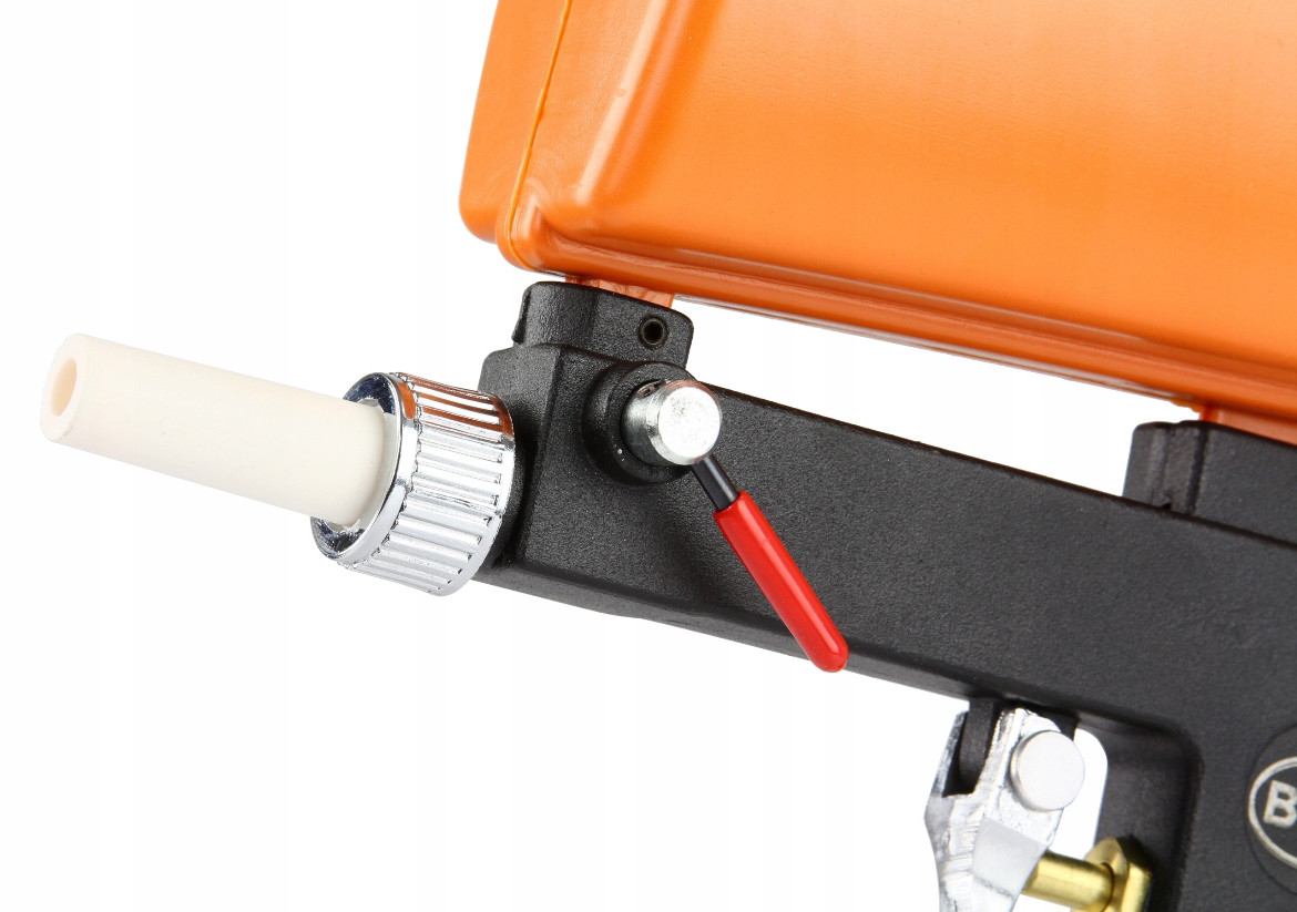 ЗАВДЯКИ ВИКОРИСТАНЮ РЕЗЕРВУАРА У ВЕРХНІЙ ЧАСТИНИ ПІСТОЛІТУ ПІСОК КОВЗАННЯ В ПИСТОЛІТ, ЩО ДОДАТКЕ ГАРАНТУ ЄМЕНШУ ПОТРИБУ У ПОВІТРЯ.